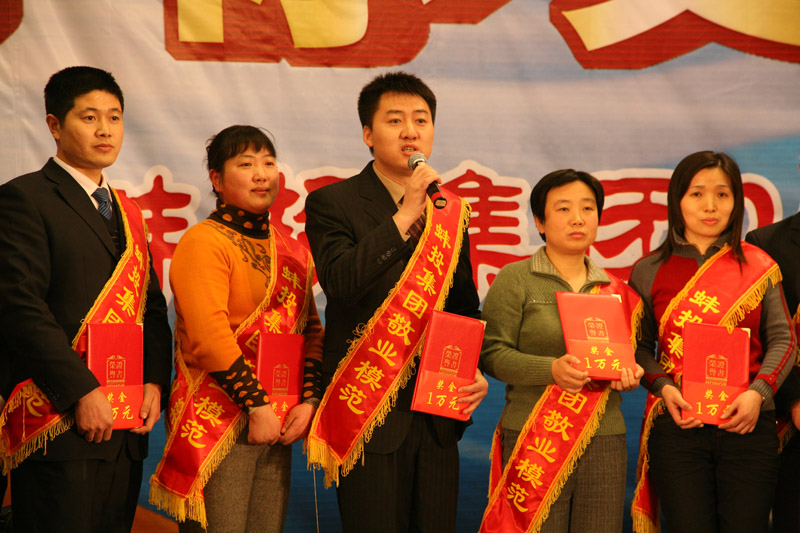 酒會(huì)上,公司表彰了2010年度6名創(chuàng)新標(biāo)兵和32名敬業(yè)模范,公司領(lǐng)導(dǎo)分別為敬業(yè)模范頒發(fā)證書(shū)和獎(jiǎng)金,張孝成副市長(zhǎng)為創(chuàng)新標(biāo)兵頒發(fā)證書(shū)、獎(jiǎng)金并致辭,肖超秘書(shū)長(zhǎng)、創(chuàng)新標(biāo)兵及敬業(yè)模范抽出19名幸運(yùn)的獲獎(jiǎng)員工,為大家呈上了精神大餐和物質(zhì)大餐;著名喜劇表演藝術(shù)家陳佩斯領(lǐng)銜主演的話劇《雷人晚餐》在蚌埠大劇院隆重上演,員工們?cè)诰茣?huì)上獻(xiàn)出精彩紛呈的歌舞表演,為集團(tuán)員工及珠城人民奉上文化大餐。與會(huì)人員舉杯同飲,共慶農(nóng)歷新年的到來(lái)。