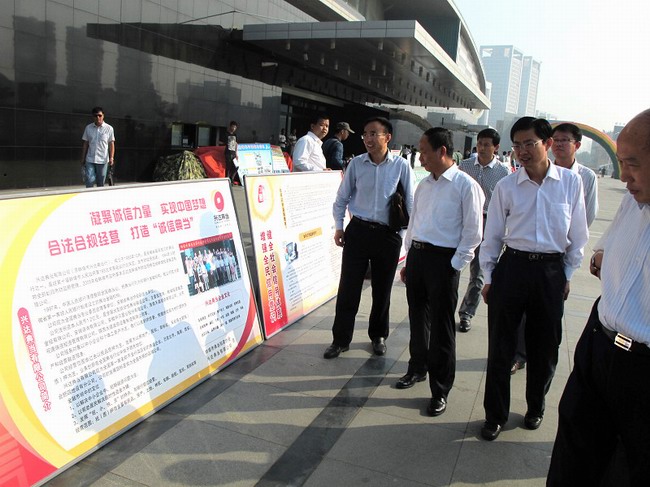 10月12日上午,在淮河文化廣場上,興達典當有限公司作為蚌埠市典當拍賣協(xié)會會長單位應邀參加了由市商務局牽頭,聯(lián)合市委宣傳部、市文明辦、市物價局、市經(jīng)信委等17個部門共同舉辦的以“凝聚誠信力量,實現(xiàn)中國夢想”為主題的誠信興商大型宣傳活動,市人大、市政協(xié)及市商務局領導現(xiàn)場巡視了各單位宣傳展板并與在場人員熱烈交流。