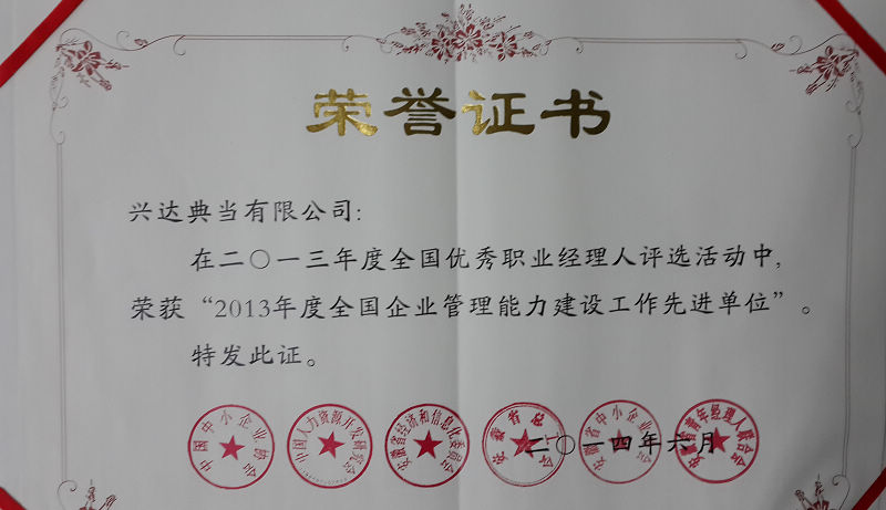日前,在合肥舉辦的2013年全國優(yōu)秀職業(yè)經(jīng)理人評選活動中,興達(dá)典當(dāng)公司榮獲“2013年度全國企業(yè)管理能力建設(shè)工作先進(jìn)單位”稱號。