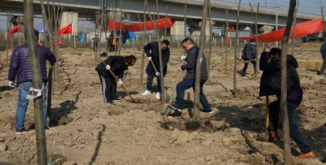 陽春三月,春意盎然。3月12日,蚌投集團及其下屬子公司在高鐵苗木基地開展2019年義務植樹活動。活動現(xiàn)場,大家心情愉悅,熱情高漲。志愿者們紛紛拿起鐵鍬,三兩人一組,相互配合,挖坑、培土、植苗、填平,種下一棵棵樹苗,為綠化貢獻自己的力量。