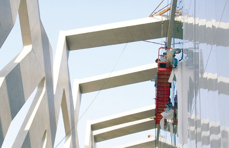 日前,施工人員在加緊安裝龍湖體育館外墻的幻彩鋁塑板。龍湖體育館的外觀造型采用透空大型群雕主題墻,既抽象又具體,既內(nèi)斂又張揚(yáng),通過構(gòu)件所產(chǎn)生的陰影投映在外墻面上,形成一個(gè)光影變化豐富的三維空間,動(dòng)感十足,給人以無限遐想。體育館建成后將成為我市標(biāo)志性建筑,提升了城市品位