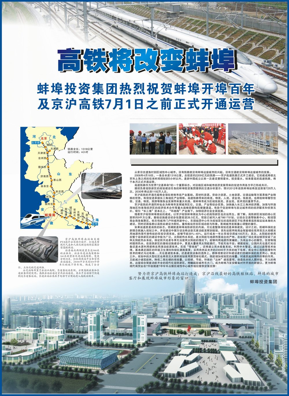 蚌投集團(tuán)熱烈祝賀蚌埠開(kāi)埠百年及京滬高鐵正式開(kāi)通運(yùn)營(yíng)