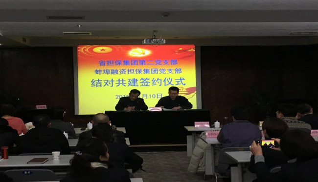 會上,蚌埠擔(dān)保集團(tuán)黨支部與省市擔(dān)保雙方進(jìn)行支部結(jié)對共建簽約。